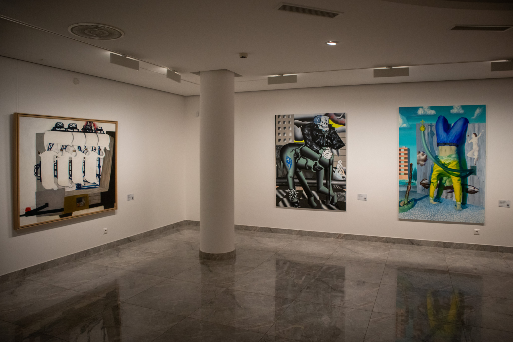 Vľavo: Martina Červenková: Privátne javiská, 2022, olej na plátne, 120×140 cm. Maľba sa umiestnila v roku 2022 na 3. mieste. V strede: Ján Vasilko: Tri postavy horách, 2008, akryl na plátne, 180×260,5 cm. Maľba sa umiestnila v roku 2008 na 2. mieste. Vpravo: Ivana Mojšová: This is a Painting of Triumphal Photography by David Chancellor, 2021, olej na plátne, 180×150 cm. Maľba sa umiestnila v roku 2021 na 2. mieste. (foto: KUNSTARTUM)