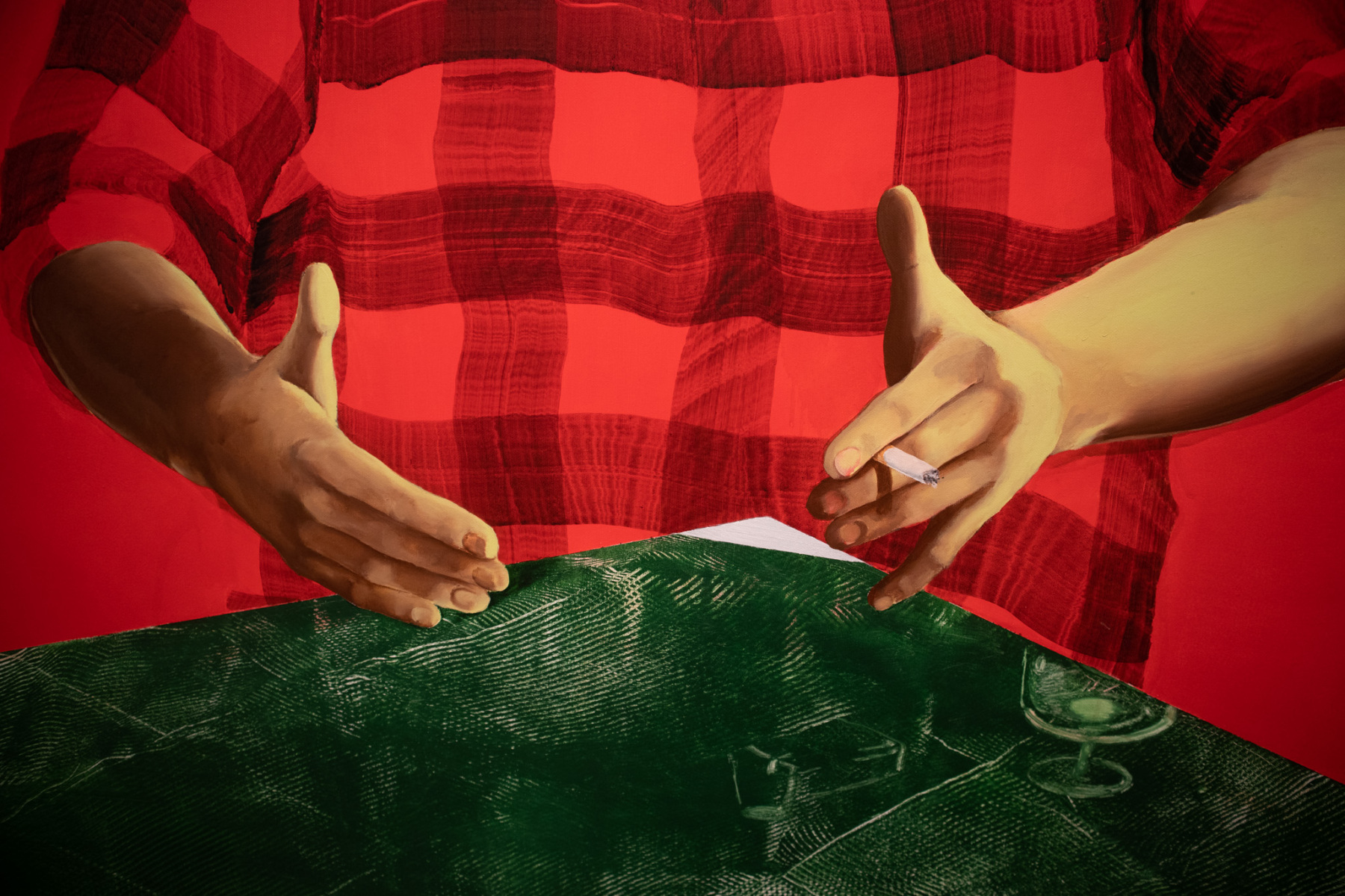 Umelci vystavujúci na prvom poschodí výstavy 20 rokov Maľby sa nepohrávali len s myšlienkami o maľbe v kontextoch dejín umenia či maľby ako komodity. Reflektovali aj samotný proces a hranice videnia, či toho, ako to môže byť zobrazené.