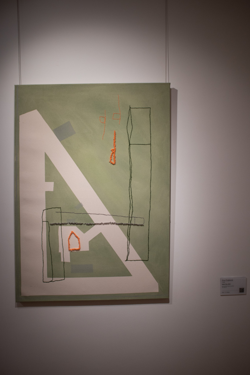 Eva Vaňová: Silent City, 2024, akryl, priadza, bavlna na plátne, 85x120 cm. Maľba sa umiestnila v roku 2025 na 3. mieste. (foto: KUNSTARTUM)