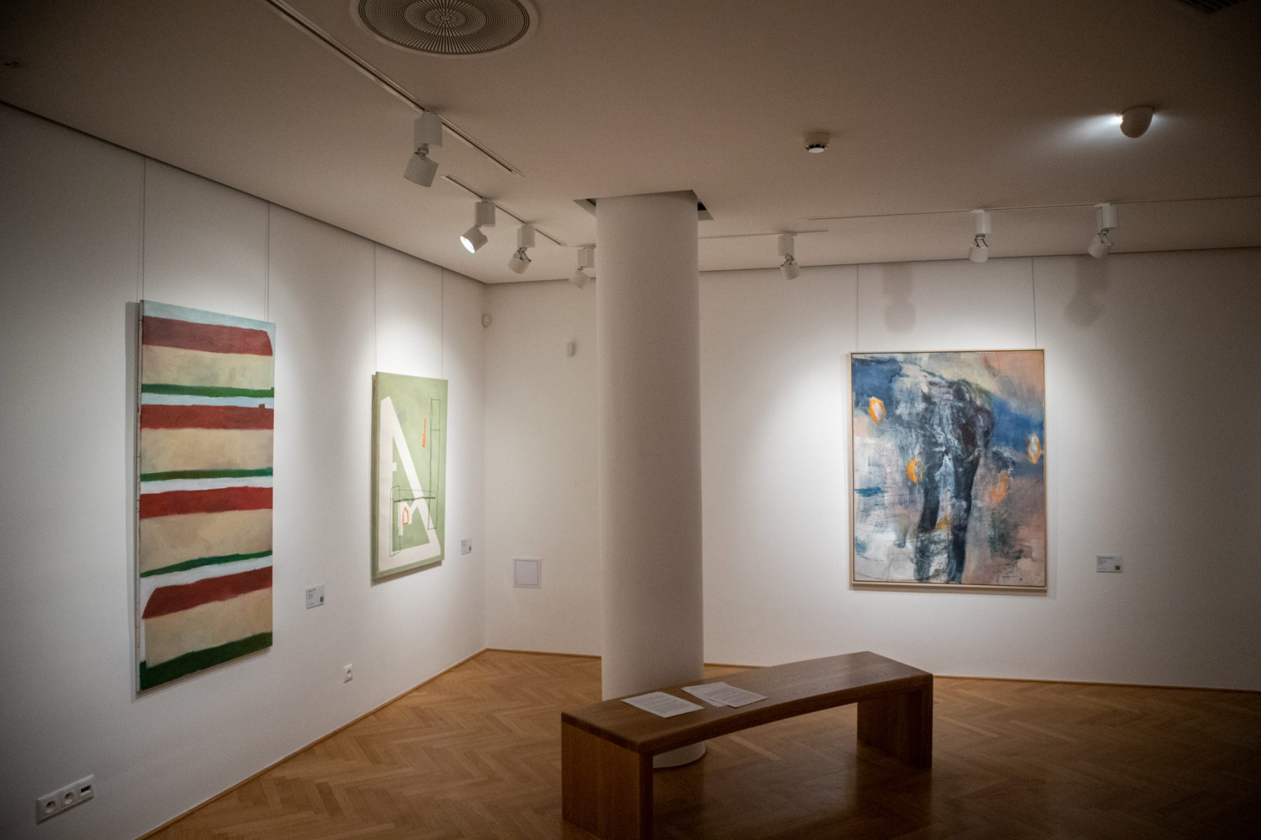 Sekcia: Reč (gesto – stopa – príbeh – znak), maľby vystavené na druhom poschodí Galérie Nedbalka v rámci výstavy 20 rokov Maľby, 2026, Bratislava (foto: KUNSTARTUM)