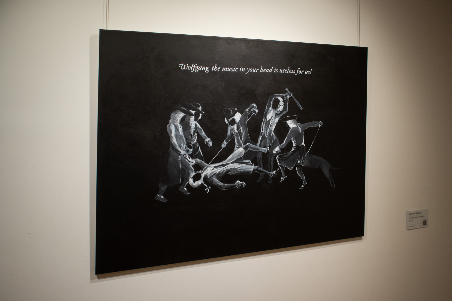 Naopak, dielo Andrása Cséfalvaya The Quality – Quantity Debate nereaguje na dejiny umenia (mohlo byť však istým spôsobom nimi inšpirované), ale skôr na umenie ako samotný proces či komoditu. Rozpráva o konflikte bohatého tvorivého priestoru imaginácie s potrebami tohto sveta. Jedným z možných vysvetlení by mohol byť rozpor hodnoty výpovede umenia oproti jeho trhovej hodnote. Zároveň však možno dodať, že bez inšpirácie z vonkajšieho sveta by nevzniklo dielo v hlave, ktoré sa len opätovným zdieľaním s vonkajším prostredím stáva užitočným. A čo znázorňuje obsahovo výdatná, ale navonok jednoduchá monochromatická maľba? Päť postáv so psom bije ležiacu postavu znázorňujúcu Mozarta. Toho identifikuje nadpis nad výjavom: „Wolfgang, the music in your head is useless for us!“Avšak dielo The Quality – Quantity Debate je jednou z mála malieb, ktoré autor vytvoril. Prečo? Lebo Andrása Cséfalvaya možno charakterizovať v jednej osobe nielen ako výtvarníka zaoberajúceho sa viacerými médiami, ale i ako spisovateľa, hudobníka, režiséra a filozofa. Vo svojej tvorbe sa zaoberá rôznymi témami – od tých súčasných, spoločenských cez témy ďalekej budúcnosti až po tie riešiace dávnu minulosť.