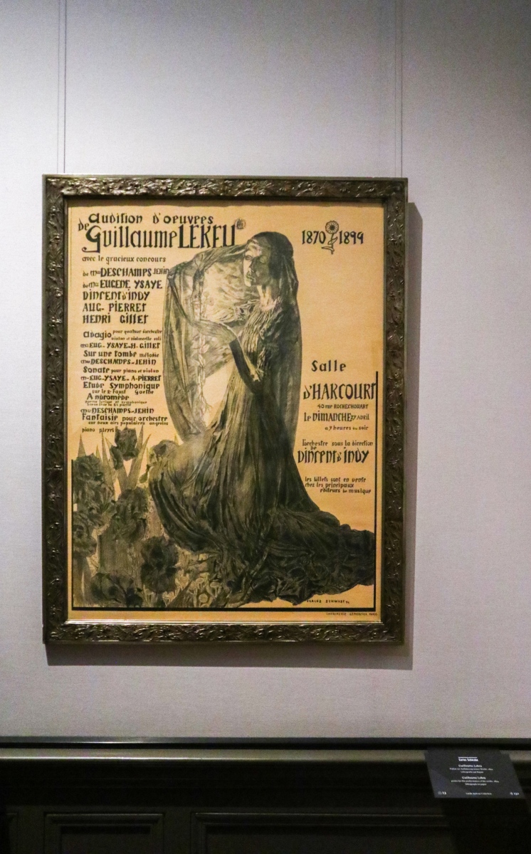 V nasledujúcej miestnosti nachádzam prepojenia symbolistických výtvarných umelcov na hudbu. Ako filozofia, tak aj hudba bola pre ich inšpiráciou. V tomto smere prichádzal prúd najmä z Nemecka. Tu sa nachádzajú okrem malieb aj kresby, knihy, notový zápis vo vitríne, ale aj plagát k vystúpeniu belgického komponistu Guillaumea Lekeua.