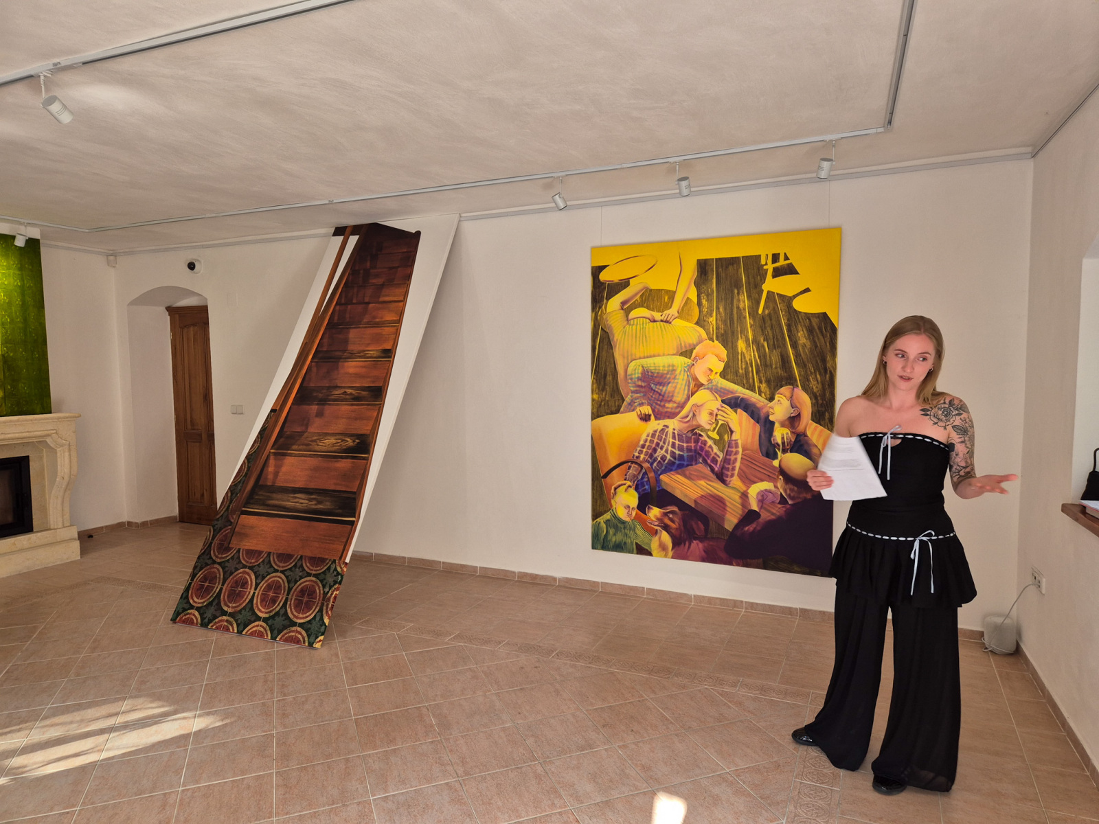 Z komentovanej prehliadky výstavy Nikola Šušovicová: Dvojmo v Galérii Jula Bindera v Banskej Štiavnici, ktorú 6.6.2025 moderovala kurátorka Petra Hyblerová. (foto: KUNSTARTUM)
