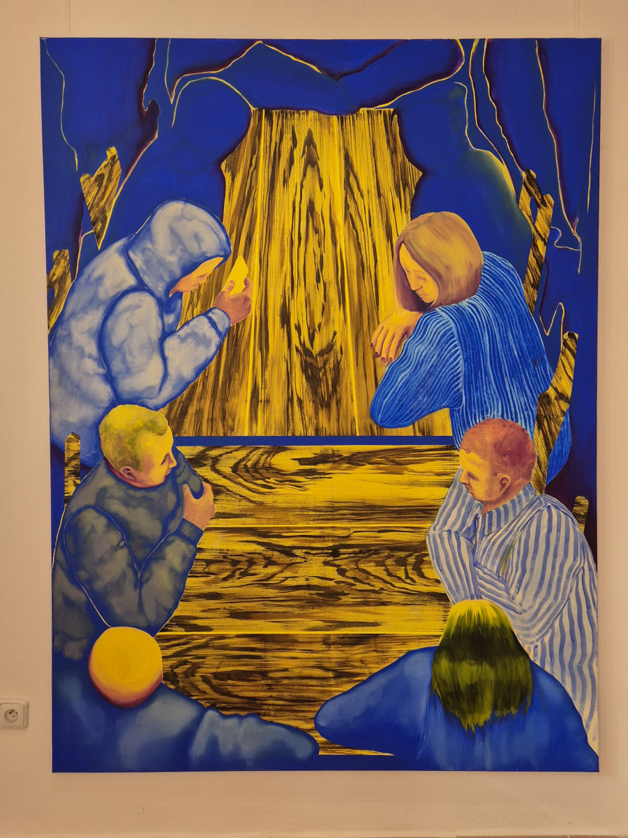 Nikola Šušovicová: Modré debatky, 2025, akryl na plátne, 150x200 cm (foto: KUNSTARTUM)
