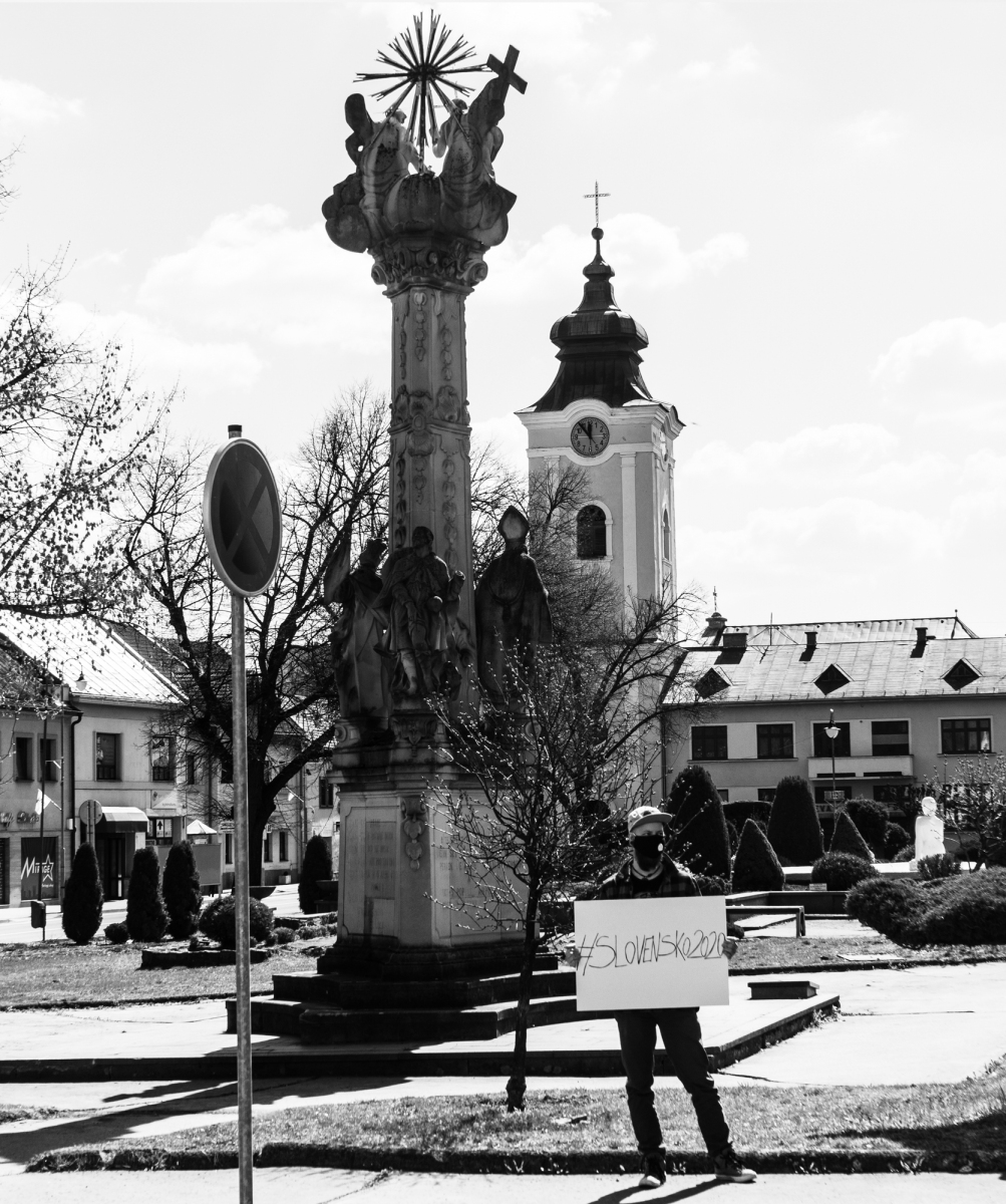 Výstava #SLOVENSKO 2020 zahrňuje fotografie, ktoré vznikli počas začiatku pandémie nového vírusu Covid 19, na jar v roku 2020. V marci bol na Slovensku vyhlásený núdzový stav. Nariadenia z neho vyplývajúce zapríčinili doslova vyľudnenie ulíc a námestí slovenských miest a obcí. Situáciu, ktorá nastala, sa rozhodol umelec Matúš Astrab zaznamenať pomocou fotografií. Vznikol tak umelecký projekt, v rámci ktorého navštevoval rôzne slovenské mestá. Cieľom návštev boli autoportréty pri takzvaných trojičných, mariánskych, alebo morových stĺpoch, ktoré bývajú zväčša umiestené na námestiach. Tieto stĺpy stavali buď preživší ľudia častokrát ako poďakovanie za ukončenie morovej epidémie, alebo ako pamiatku obetiam, ktoré naň podľahli. Môžeme ich rozdeliť na dva typy. Mariánske stĺpy znázorňujú Pannu Máriu. Trojičné stĺpy zas zobrazujú Najsvätejšiu trojicu (Boh – Otec, Syn a Duch svätý).