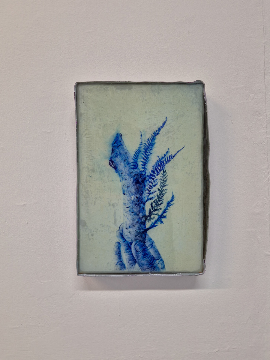 Helen Tóth: Na chrbte nosím paprade, 2024, kresba na japonskom papieri, kašírovaná na drevo so živicovou lazúrou, 20x30 cm (foto: KUNSTARTUM)