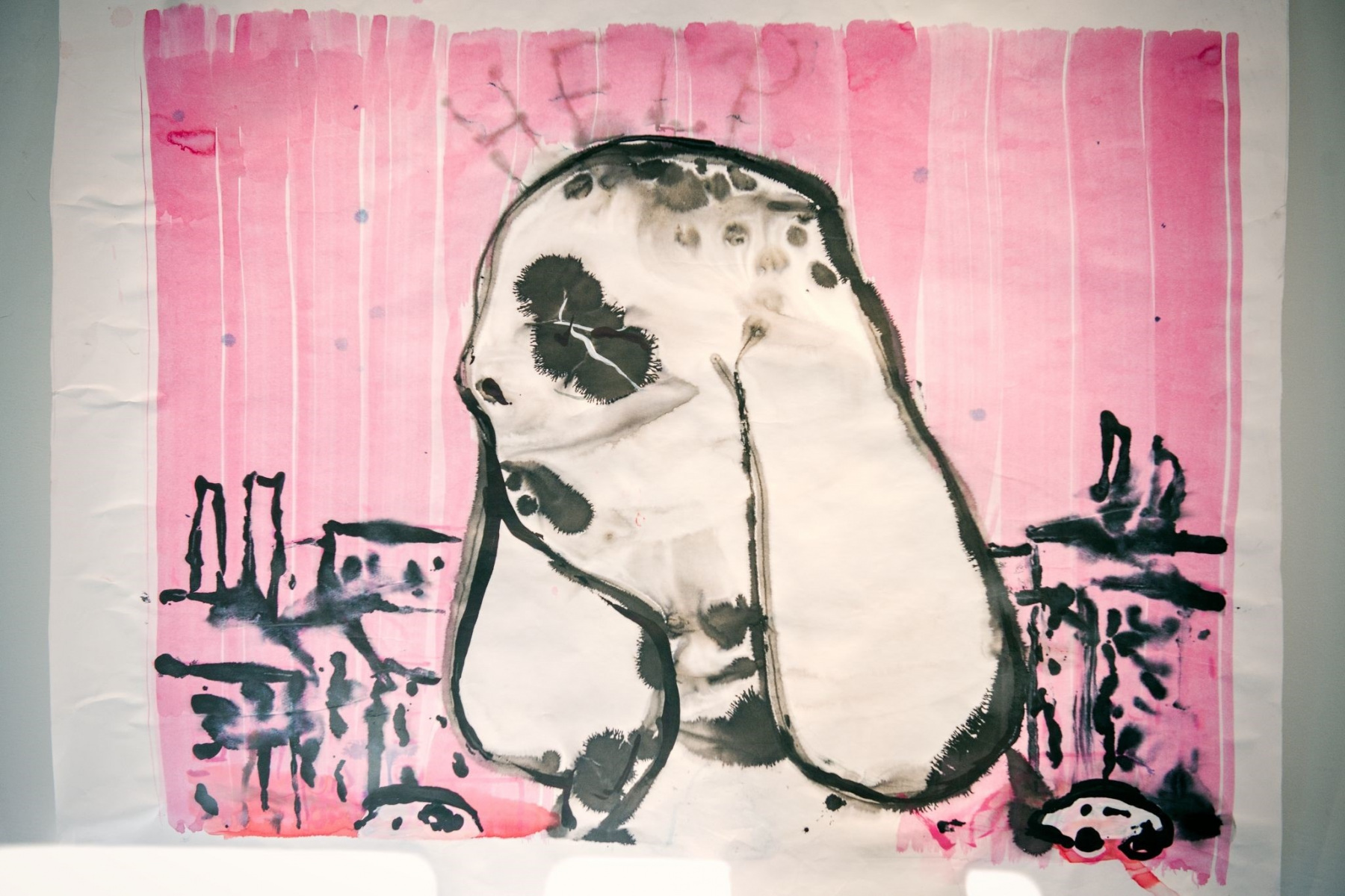 Erik Šille: Help - Japan, 2020, tuš na papieri, 101x82 cm (foto: Ján Petrík)