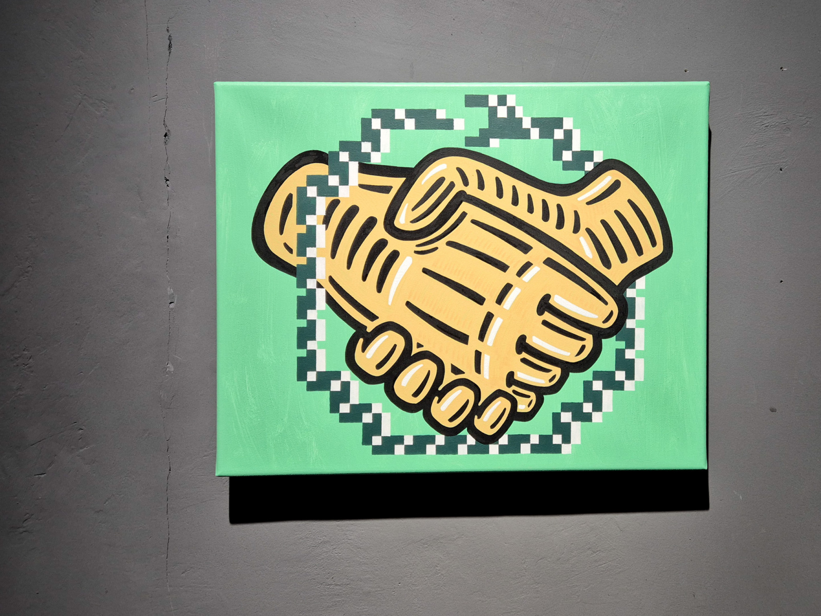 Čo je ale zrejme viditeľné na každej maľbe, tak je ruka. Tento symbol môže poukazovať na veľa významov. Rukami ľudia zarábajú peniaze, no nemyslím len na manuálne pracujúcich ľudí, ako môže tento význam na prvé prečítanie znieť, ale na všetkých ľudí. Taktiež ľudia pracujúci v kanceláriách využívajú na svoju prácu ruky, alebo i obchodníci uzatvárajúci nejakú dohodu si podávajú ruky. Však kto ruky nepoužíva? Používame ich všetci, tak ako aj peniaze. Sú neoddeliteľnou súčasťou našich životov.