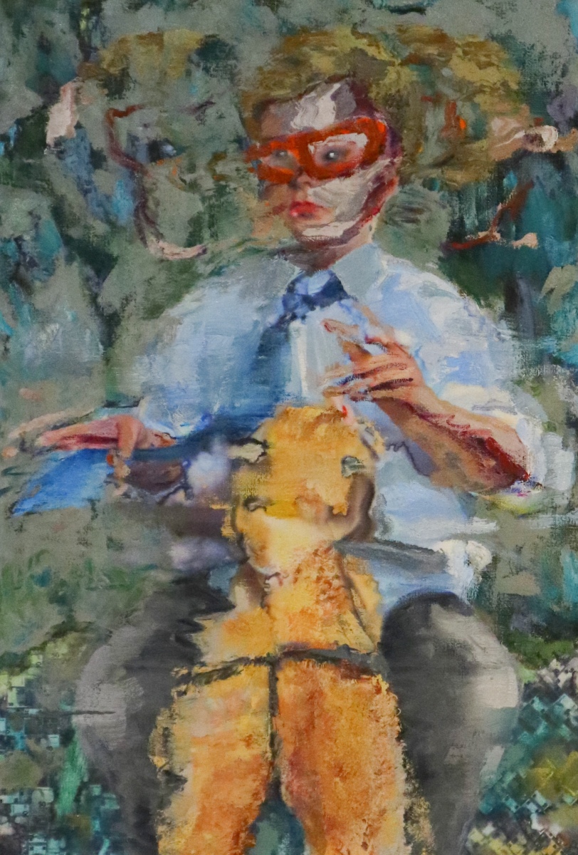 Peter Decheť, Politik 03, 2020, olej na plátne/maľba na printe (fotografií), 85×70 cm, z cyklu Powered by Power. (foto: KUNSTARTUM)