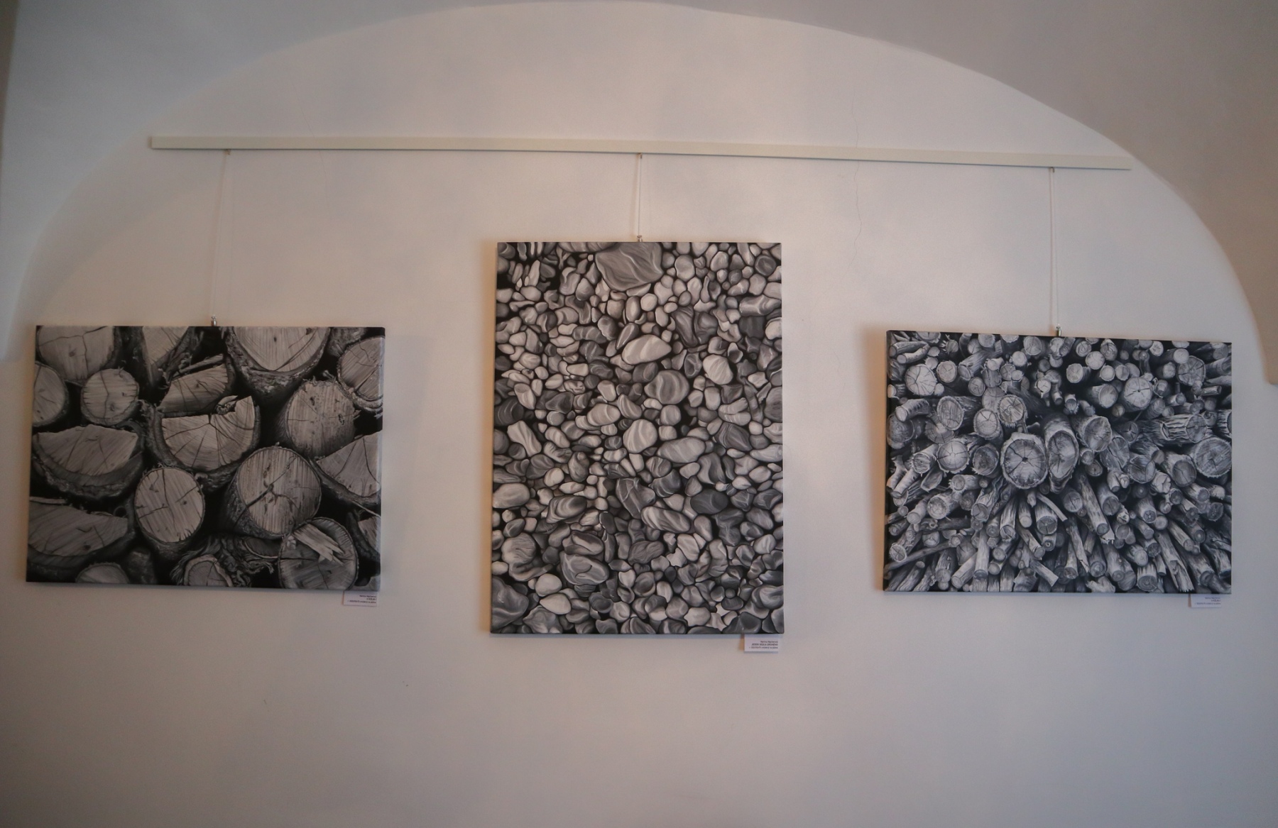 Obrazy Martiny Majcherovej, ktorá mala tú česť ako prvá tu vystavovať, boli pohlcujúce. Miestami boli niektoré maľby na pohľad pomýliteľné s čiernobielou fotografiou, čomu dopomohli vynikajúco spracované detaily. Tých bolo asi najviac v zobrazeniach Banskej Štiavnice. Ale ani iné obrazy neboli o niečo horšie. Priam naopak. Obrazy ako Jeden vedľa druhého, či V kôlni I a II, ktoré zobrazovali kamene a drevá, boli takisto impozantné. Tvorba Martiny ukazuje, že má čo svetu ukázať. Hoci umenie je pre ňu najmä záľuba, dúfam, že v ňom dlho zotrvá a budeme mať možnosť navštevovať jej výstavy obrazov častejšie.