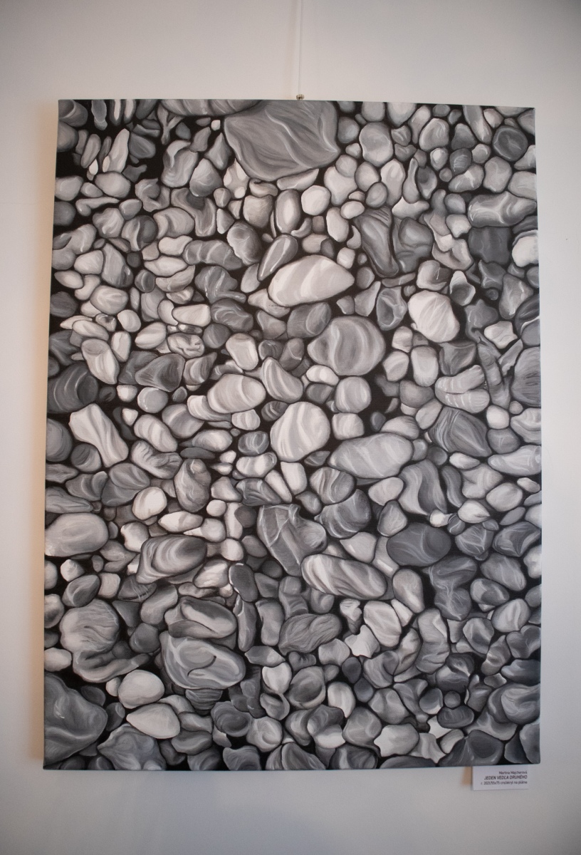 Obrazy Martiny Majcherovej, ktorá mala tú česť ako prvá tu vystavovať, boli pohlcujúce. Miestami boli niektoré maľby na pohľad pomýliteľné s čiernobielou fotografiou, čomu dopomohli vynikajúco spracované detaily. Tých bolo asi najviac v zobrazeniach Banskej Štiavnice. Ale ani iné obrazy neboli o niečo horšie. Priam naopak. Obrazy ako Jeden vedľa druhého, či V kôlni I a II, ktoré zobrazovali kamene a drevá, boli takisto impozantné. Tvorba Martiny ukazuje, že má čo svetu ukázať. Hoci umenie je pre ňu najmä záľuba, dúfam, že v ňom dlho zotrvá a budeme mať možnosť navštevovať jej výstavy obrazov častejšie.